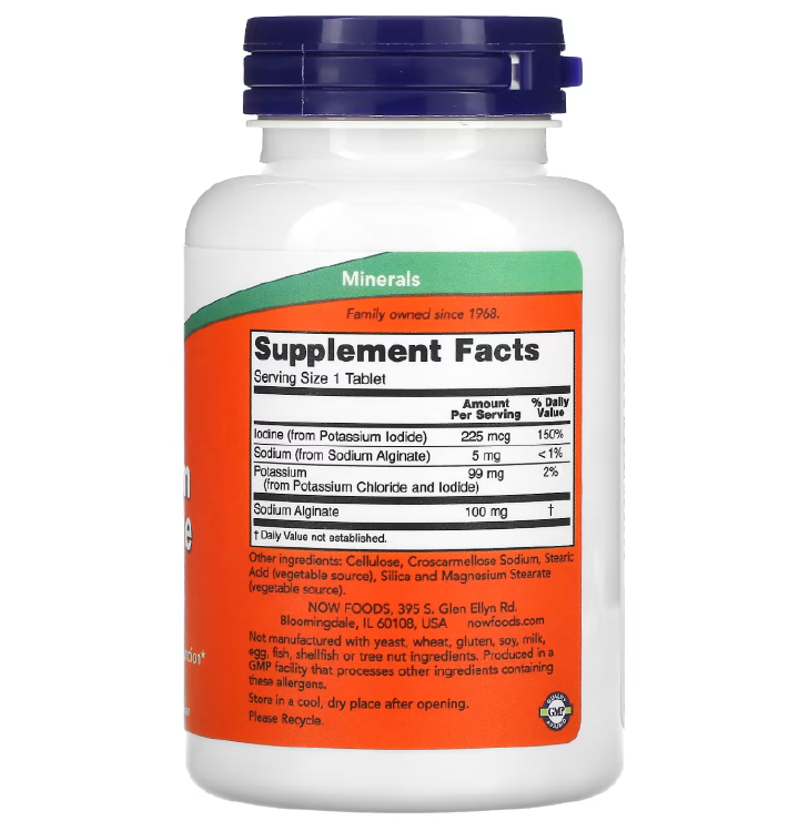 Potassium Iodide (KI) is a compound that contains Iodine, a nutrient necessary for normal thyroid function. Iodine, in the form of Iodide, is an integral part of thyroid secretions that regulate cellular metabolism and energy production. NOW® Potassium plus Iodide also supplies Potassium, a mineral that is essential for the maintenance of healthy water and electrolyte balance, as well as whole body pH.